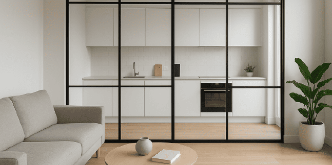 Usar una pared de cristal para separar la cocina del salón. La tendencia de las cocinas abiertas al salón sigue creciendo, pero muchas personas buscan una solución que combine amplitud, luz y separación visual. En ese punto, las paredes de cristal se han convertido en una opción moderna, funcional y estética para dividir espacios sin renunciar a la sensación de apertura.