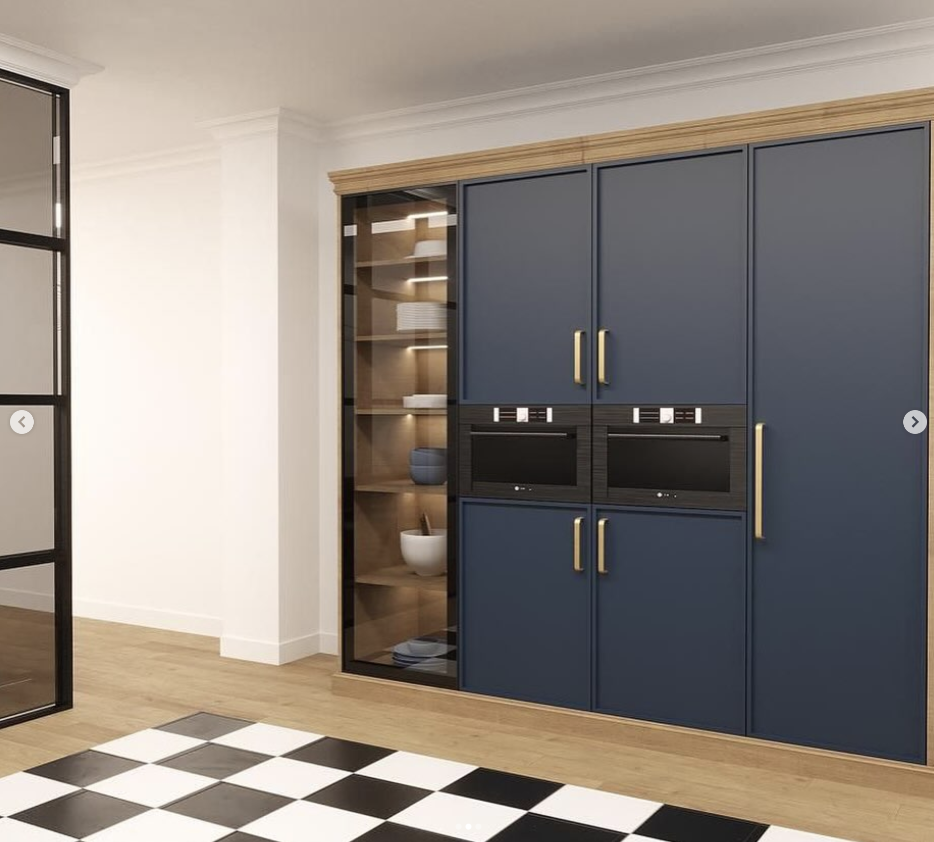 ¡Déjate seducir por la exquisitez de nuestra cocina azul de diseño en ekeHOME! Con un tono azul elegante que cautiva a primera vista, esta cocina es la definición de estilo y distinción. Nuestra carpintería a medida garantiza la precisión y la calidad en cada detalle, mientras que los tiradores en dorado añaden un toque de lujo y refinamiento. Además, las estanterías acristaladas ofrecen una solución funcional y estética para exhibir tus objetos más preciados. Descubre la armonía entre belleza y funcionalidad con la cocina azul de diseño de ekeHOME.